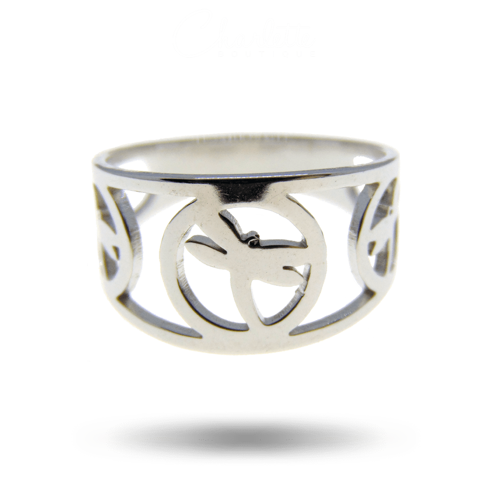 Fényes ezüst színű szitakötő alakú női gyűrű.