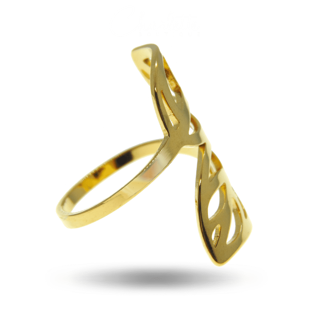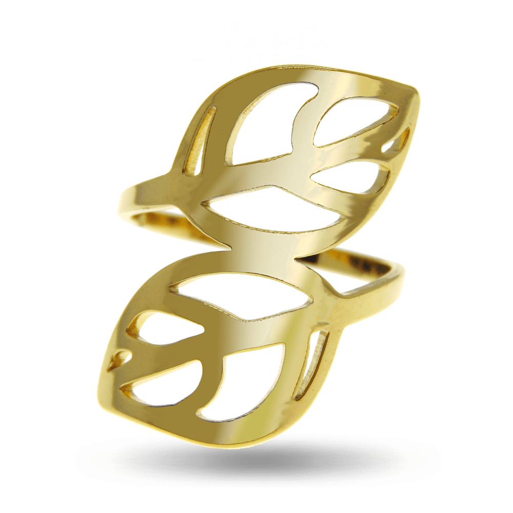 Fényes arany színű dupla levél alakú női gyűrű.