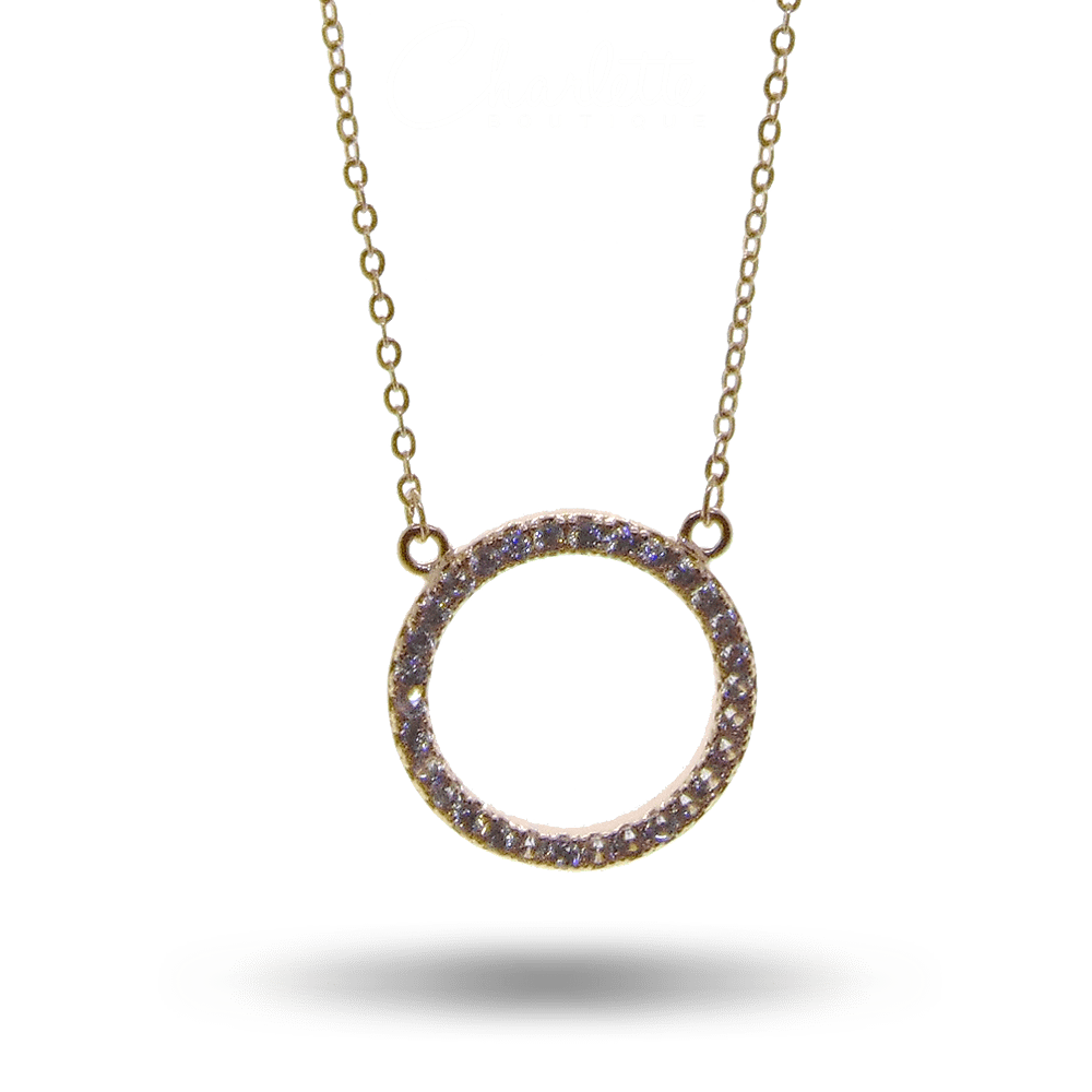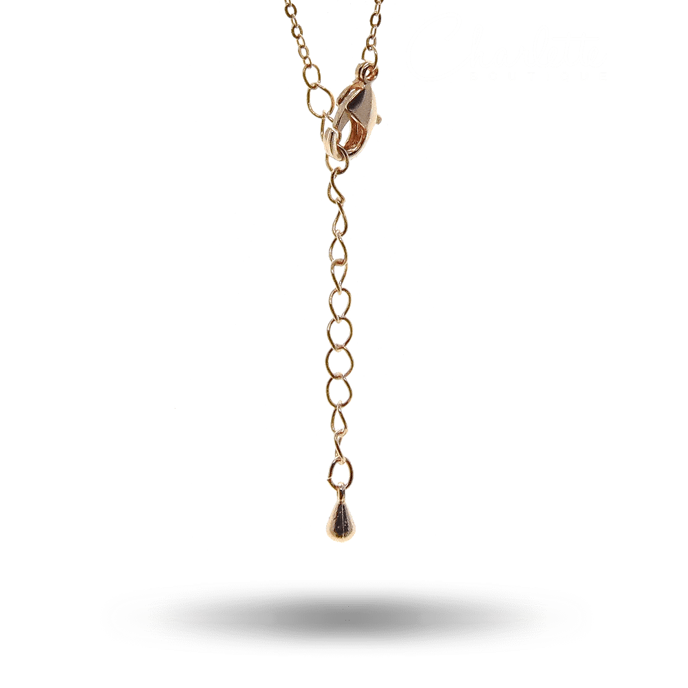 Fényes rozé arany színű női nyaklánc fehér köves medállal.