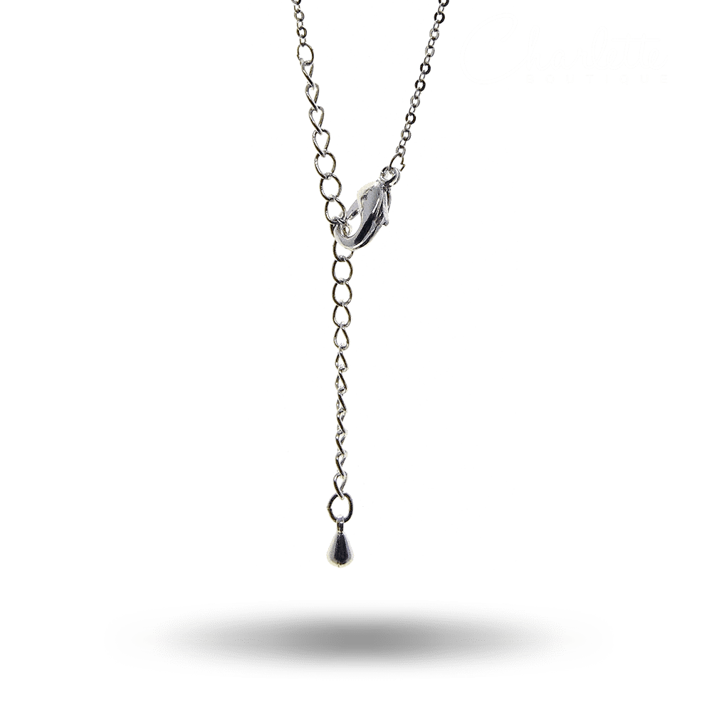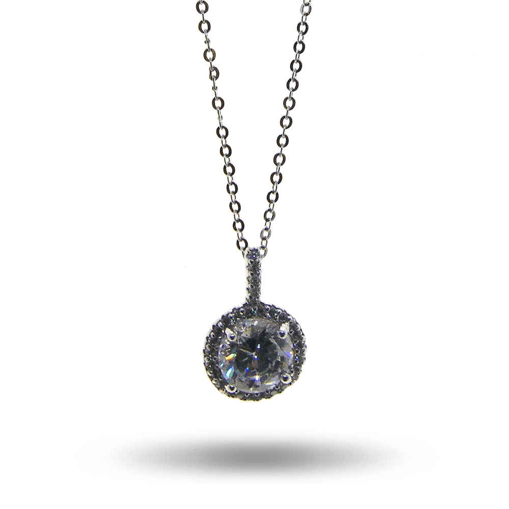 Fényes ezüst színű női nyaklánc fehér köves medállal.